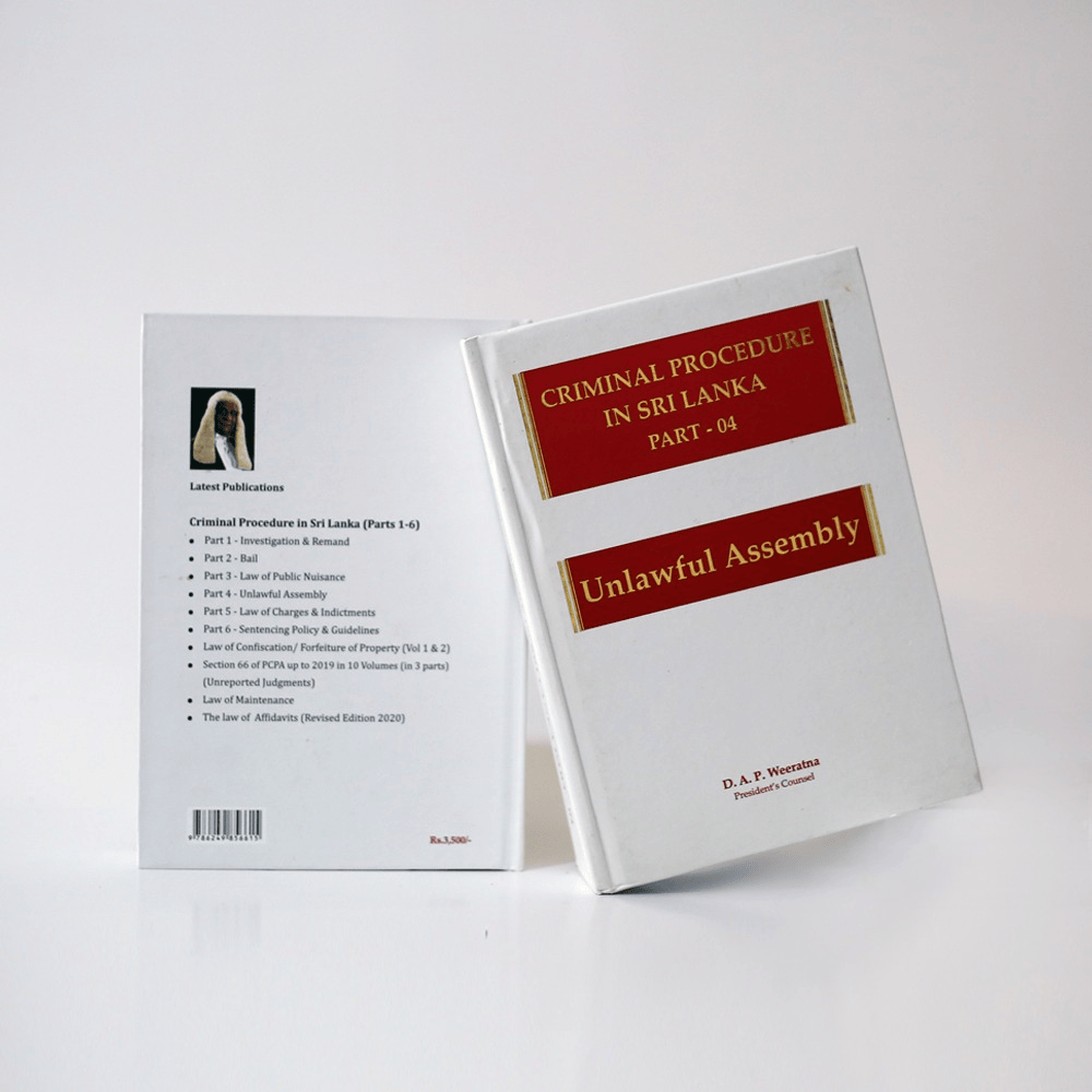 Criminal Procedure in Sri Lanka Part – 04: Unlawful Assembly by D.A.P. Weeratna is an essential resource for understanding the legal framework surrounding the offense of unlawful assembly under Sri Lankan criminal law. This book offers a comprehensive analysis of the concept, legal definitions, and judicial precedents related to unlawful assembly, one of the most significant public order offenses in Sri Lanka.